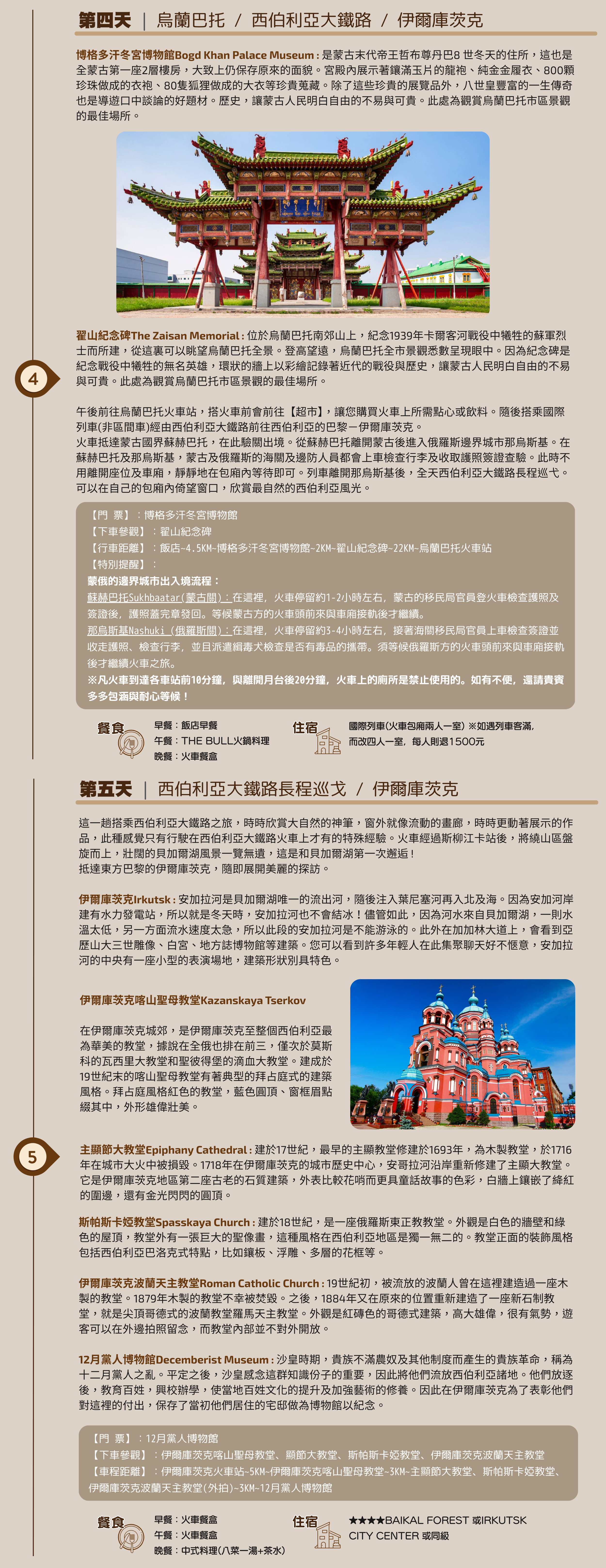蒙古國西伯利亞大鐵路、奧立洪島、貝加爾湖環湖列車13天(桃園出發)